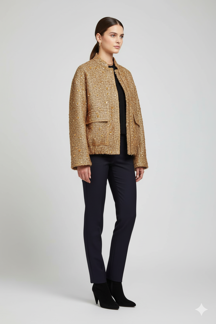 Berenice | Krátká zlatá bunda — Lesklá elegance & Sváteční kouzlo
