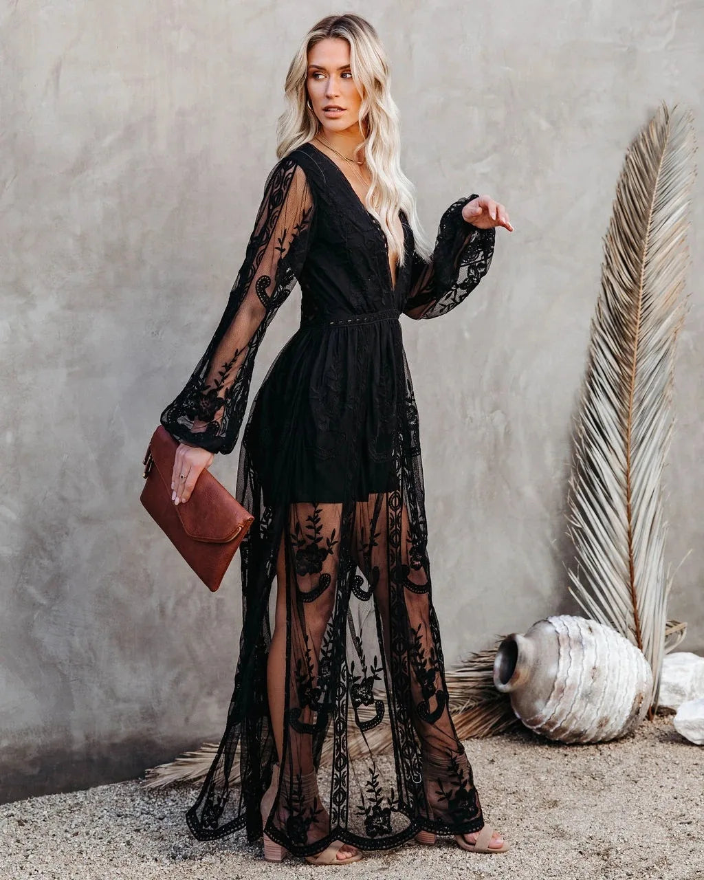 Adeline | Dlouhá květinová tištěná šaty z tylu s rozparkem – elegance a rafinovanost