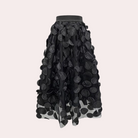 Tato dlouhá sukně nabízí rafinovanou a ženskou siluetu. Je dostupná v zelené, černé a fialové, přizpůsobí se různým příležitostem.