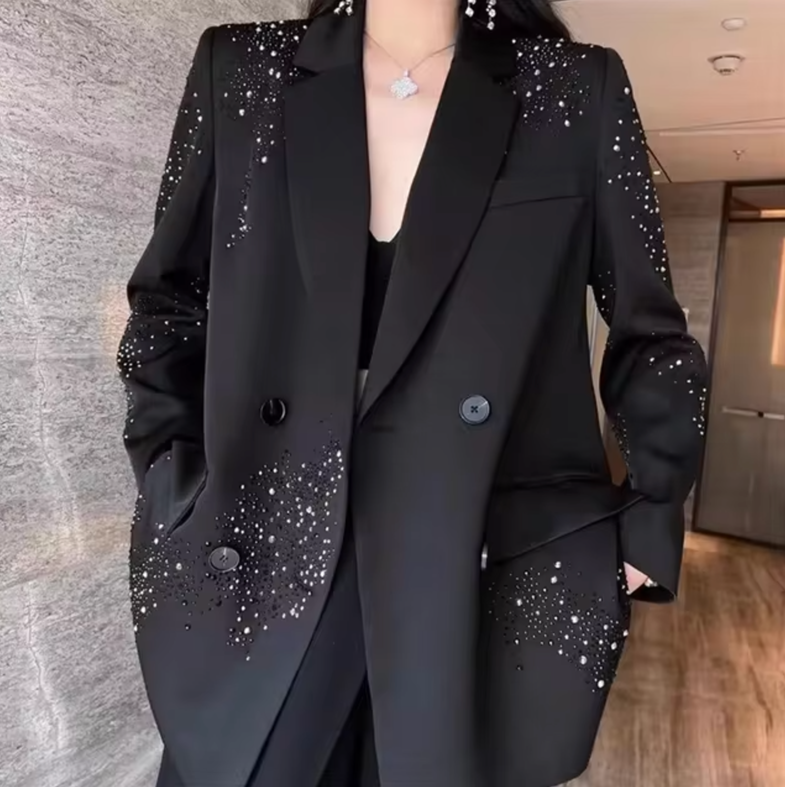 קתלין | ז'קט שחור אלגנטי — ברק עדין וסגנון מעודן